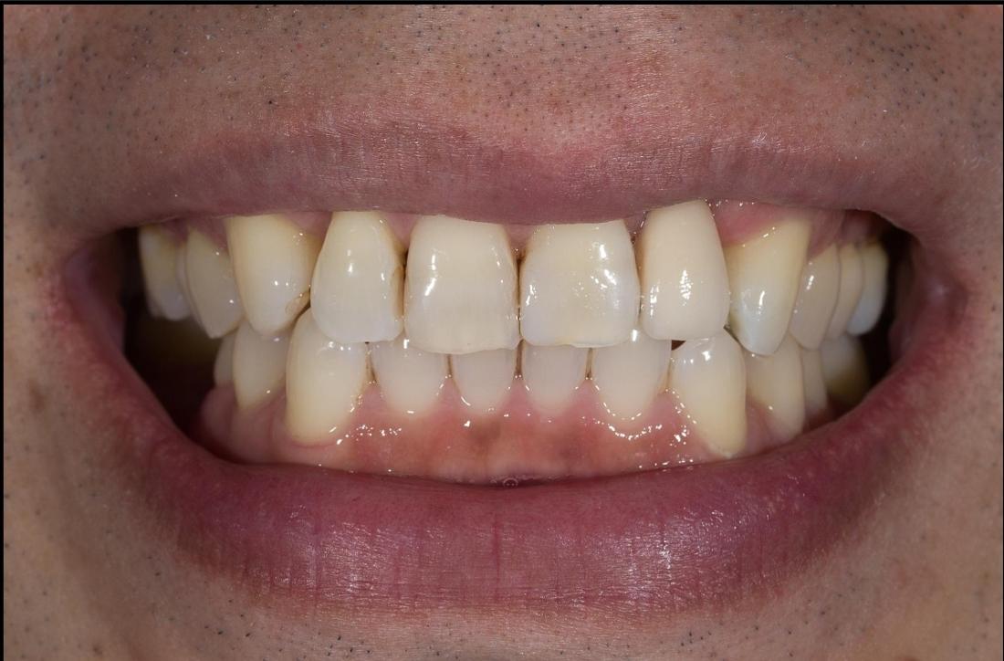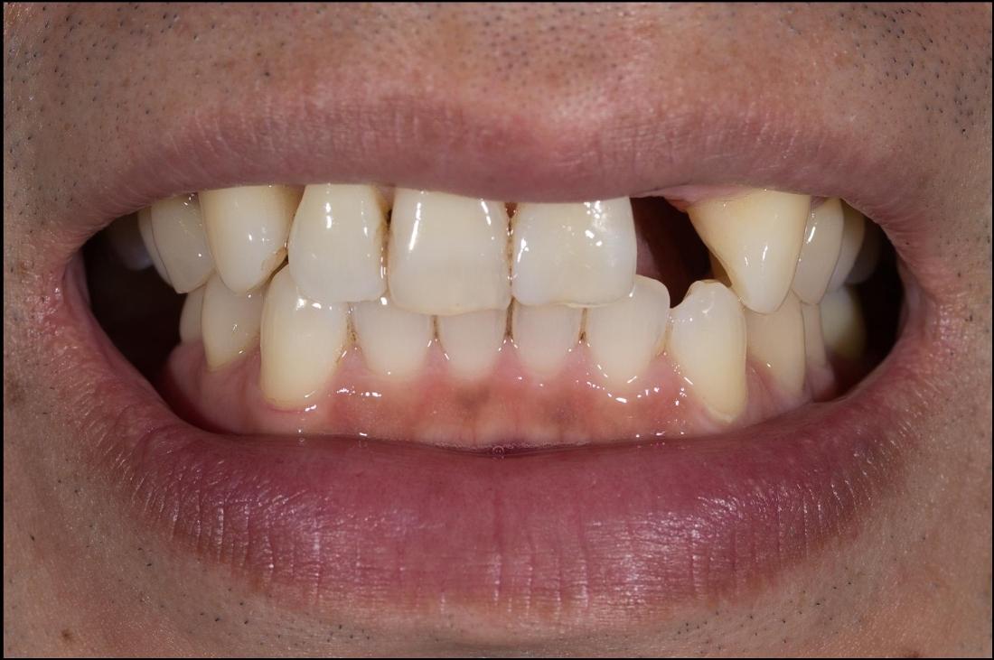 A missing tooth replaced with a Maryland bridge. In the right situation, this can be a long lasting, conservative option to replace a missing tooth without the need to drill. It is bonded securely to the adjacent tooth with a strong resin.